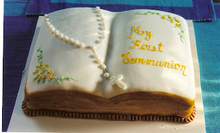 Baptism cake with Bible, Rosary, cross and doves $140.00
