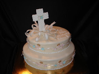 Tiered Oval Baptism cake with cherubs, cross and bow $140.00